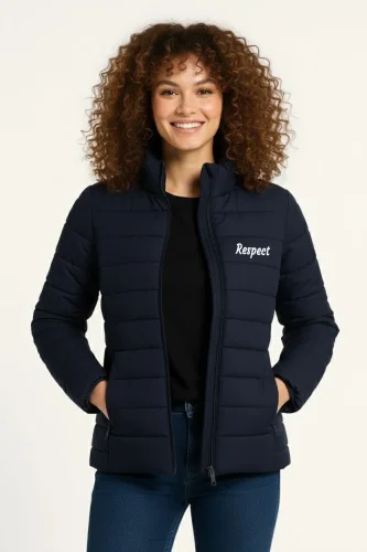 Mikro Su İtici Kapitone Baskılı Astarlı Fermuarlı Bomber Mont Lacivert